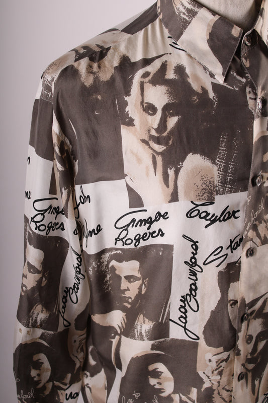 Vintage 80s Cedars Sport Silk Hollywood Actors Print Shirt Mens Size Medium